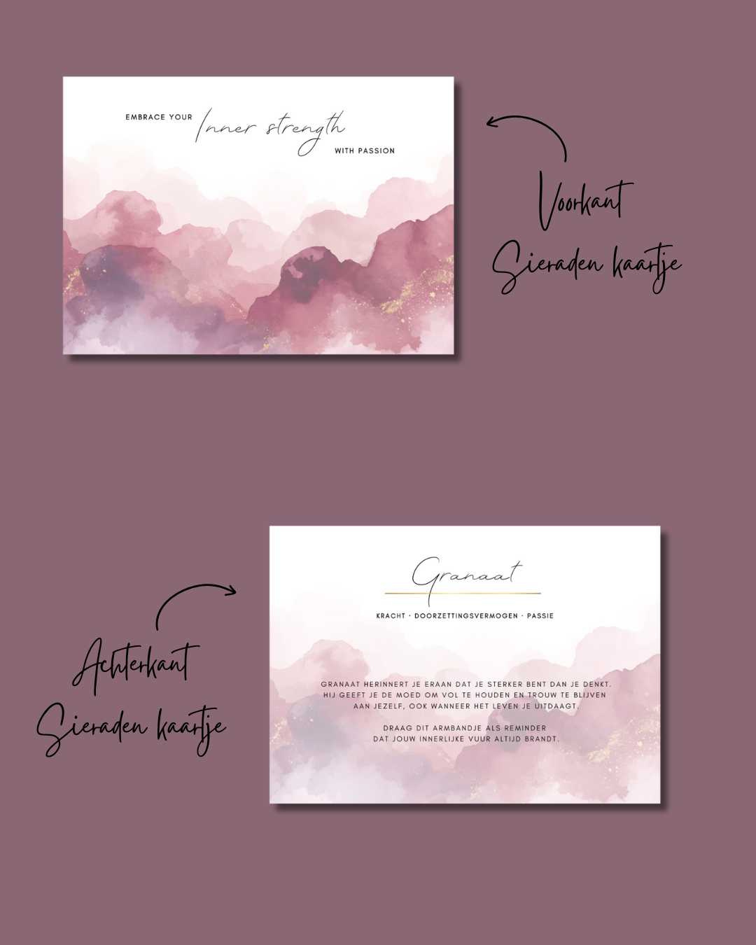 - Verpakking: geleverd op sieradenkaartje met affirmatie & uitleg, in cadeauzakje