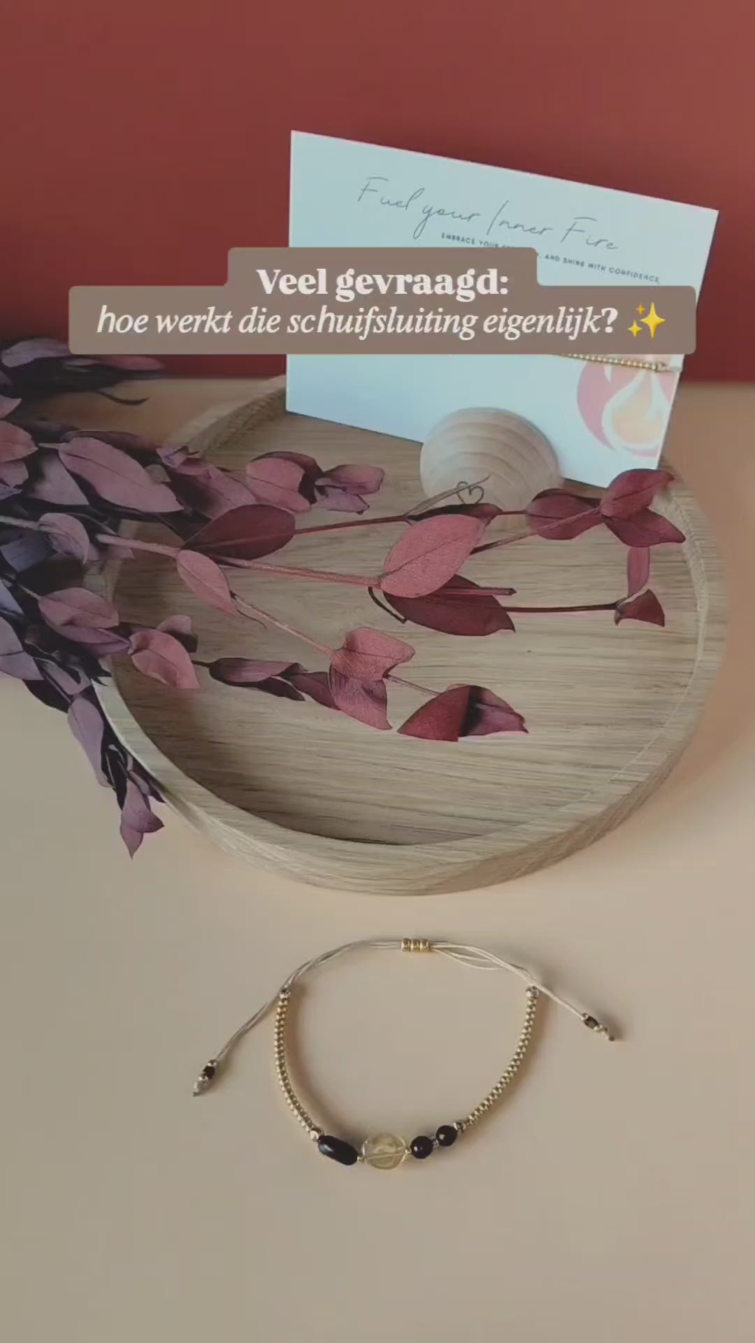 Het Innerfire Armbandje is ontworpen als symbool voor de kracht om te gaan voor waar je hart ligt. De warme herfstkleuren en de betekenisvolle edelstenen herinneren je eraan dat jouw vuur altijd mag branden. Dit armbandje staat voor doorzettingsvermogen, moed en de passie om je dromen waar te maken – een subtiele, dagelijkse reminder dat jij de kracht in je draagt.