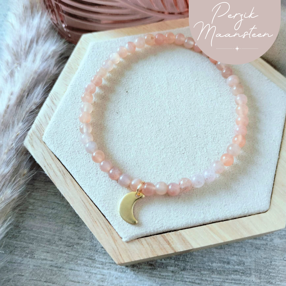 Perzik Maansteen Kogelarmbandje – Voor Rust en Balans
